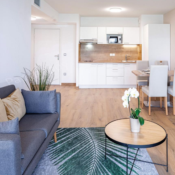 Appartement type 3 de 61,57m2, situé au rez-de-chaussée comprenant séjour avec cuisine, 2 chambres, salle d’eau avec WC + stationnement + Balcon de 16.00m2