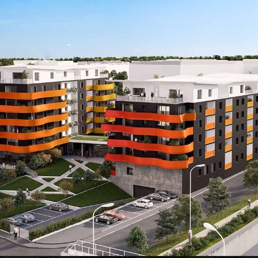 Appartement type 3 de 59,00 m2, situé au 4ème étage exposé au Sud-Est comprenant séjour avec cuisine, 2 chambres, salle d’eau avec WC + -balcon de 7.00m² + stationnement